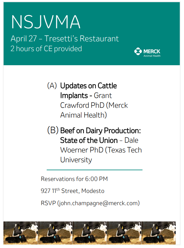April 27 – CE Dinner – Updates on Cattle Implants & Beef on Dairy Production